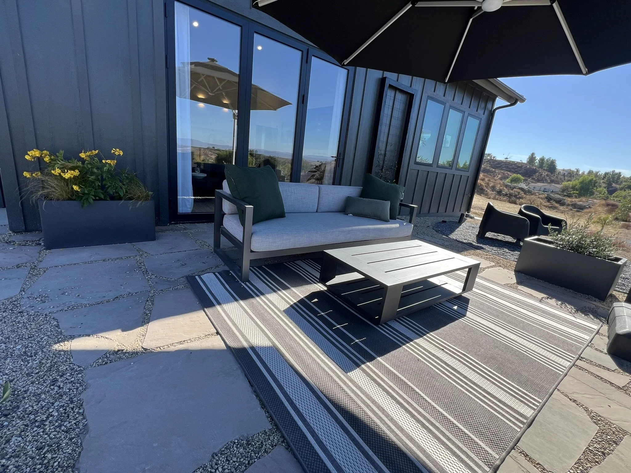 The Little Vyne is a fully furnished retreat in Temecula Wine Country. This standalone, one-bedroom home is designed for comfort and relaxation, featuring plush bedding, high-end appliances, indoor-outdoor living, and a private patio with stunning vineyard views.